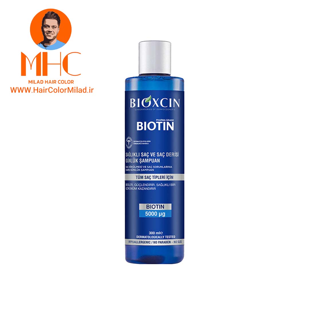 شامپو ضد ریزش بیوکسین مدل Pharma Grade Biotin مناسب انواع موها یکی از بهترین شامپوهای تخصصی برای کنترل ریزش موهاست. فروشگاه اینترنتی رنگ مو میلاد، موی سالم با رنگ زیبا.