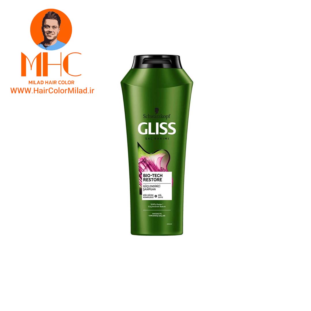 شامپو مخصوص موهای حساس و آسیب دیده Gliss ترکیه محصولی با غلظت مناسب میباشد که با فرمول جدید تقویت شده با تاثیر گذاری از ریشه تا نوک موها را ترمیم میکند. فروشگاه اینترنتی رنگ مو میلاد، موی سالم با رنگ زیبا.